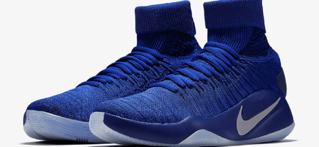 En début de mois, les Nike Hyperdunk 2016 ont vu leur version Flyknit s’habiller de gris et de noir pour deux coloris sympathiques, mais plutôt classiques. Avec ce modèle bleu, on a un peu plus d’originalité et de couleur pour se la péter sur les parquets.