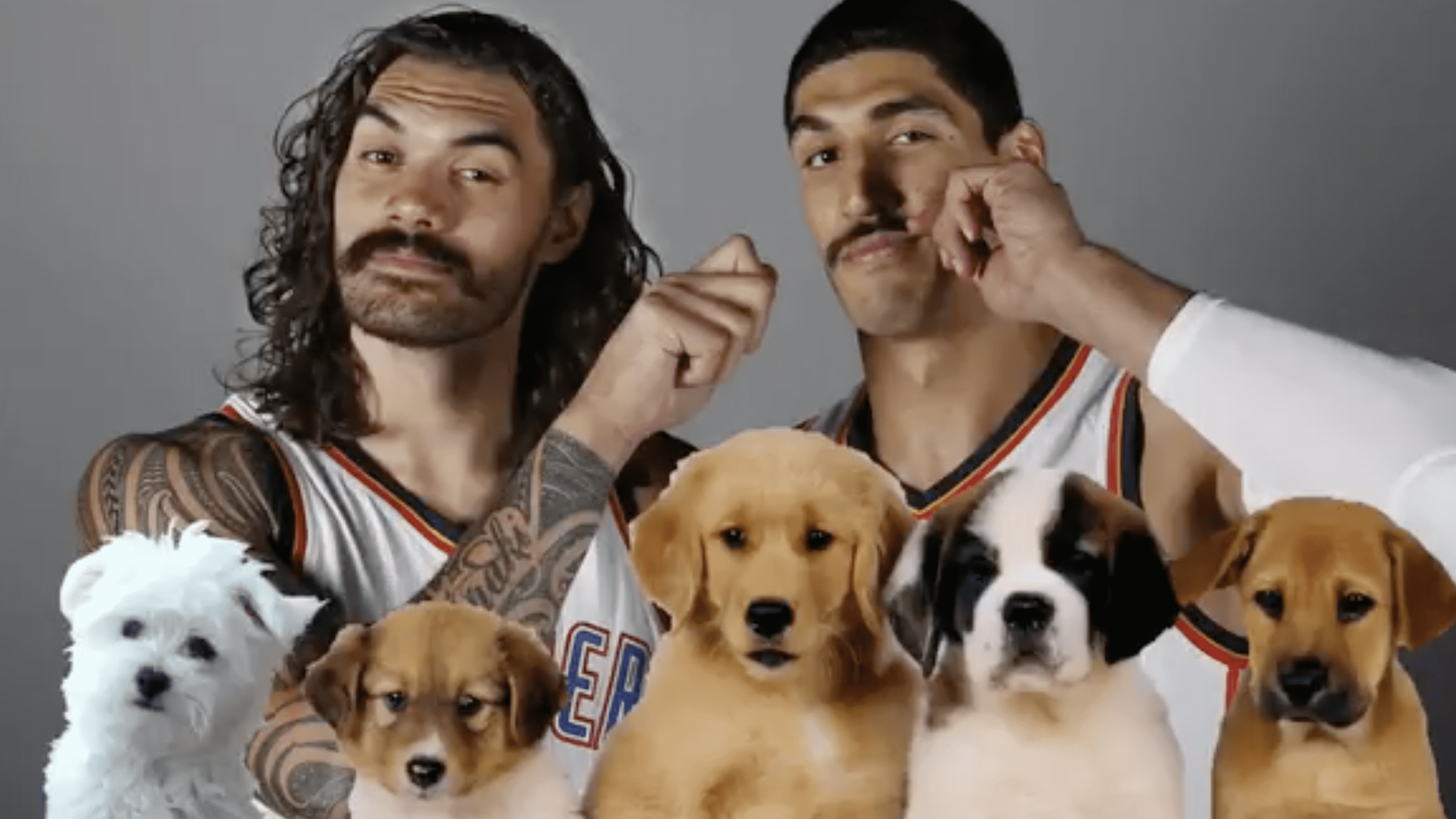 Effectivement, Steven Adams et Enes Kanter, plus connus sous le nom des Stache Brothers, se sont fendus d’une petite vidéo lobbying qui fait splash. OKLM car posés sur un transat en pyjama devant un feu de cheminée avec une pipe au bec (tout un symbole hein), les deux géants se posent la question existentielle suivante : qu’est-ce qui est le plus important à nos yeux que les quelques poils nichés en-dessous du nez ? Sans alcool, même si on pourrait croire qu’ils ont abusé de la boisson, Kanter dit à son bro qu’ils privilégient peut-être les chiots – parce qu’ils adorent les chiots – ou le long métrage N’oublie jamais, parce qu’ils kiffent les films d’amour aussi. Ou peut-être même les arbres, rapport à leur physique de bûcheron (merci le cliché). Et puis Steven s’énerve gentiment et répond :
