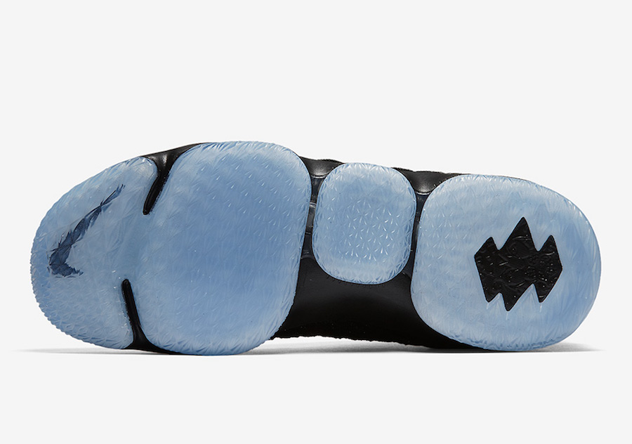 Cette version des LeBron 15 Black Metallic Gold, comme son nom l’indique, s’appuie sur du noir et quelques touches de doré. C’est ainsi que la teinte foncée habille l’intégralité de la partie supérieure de la paire, tandis que le ton métallique prend place au niveau des Swoosh sur l’arrière des grolles. On l’aperçoit aussi à l’intérieur des pompes, ou encore sur le logo « couronne » composé du LJ présent sur la languette. Bien entendu, on retrouve toujours le Battleknit caractéristique des LeBron 15, et une bonne dose d’amorti avec l’unité Zoom Air présente dans la semelle translucide pour sa partie extérieure, alors que l’emplacement intermédiaire reprend le noir de l’empeigne.
