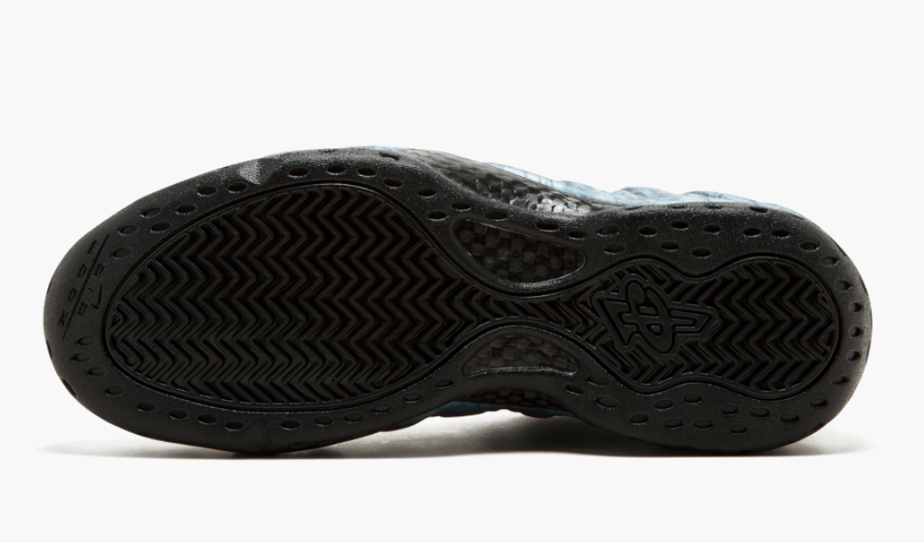 Abalone, traduction anglaise – mais anglicisme également utilisé dans nos contrées – de ormeau qui est un mollusque marin comestible dont le nom vient du latin auris maris – oreille de mer – à cause de sa forme en oreille. Voilà, ça vous fait une belle jambe de savoir cela. Mais pourquoi cette version des Foamposite s’appelle-t-elle comme ça alors que les chaussures ne sont pas en forme d’oreille ? Et bien parce que la couleur de ce coquillage est le bleu avec une impression irisée, comme la coquille de ce modèle. pour le reste, ces Foamposite sont en noir comme c’est toujours le cas ou quasiment, sur la languette, la fibre de carbone, l’intérieur vers la cheville et la semelle. Le logo Penny et le mini swoosh reprennent pour leur aprt l’aspect bleuté qui caractérise cette version.