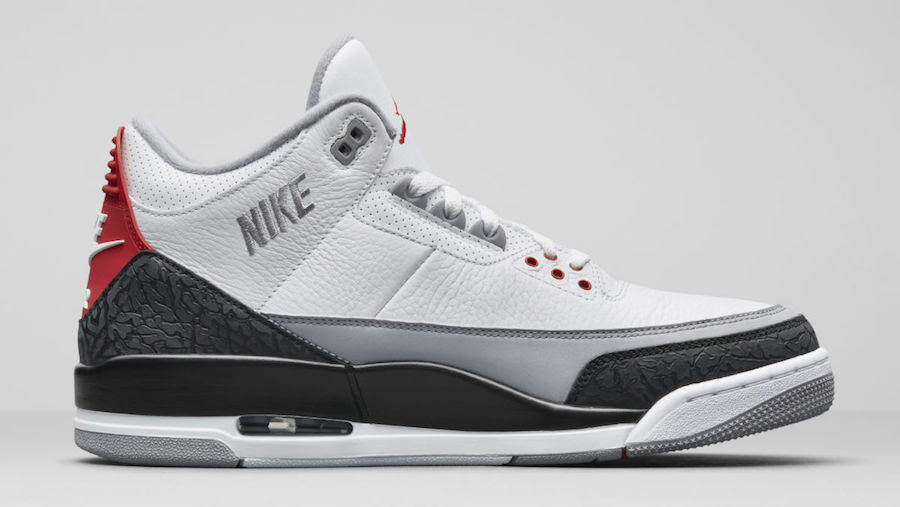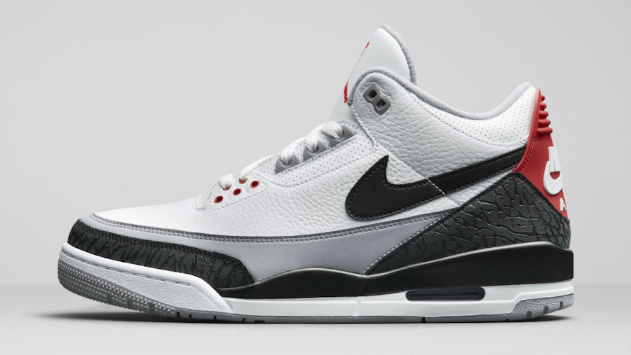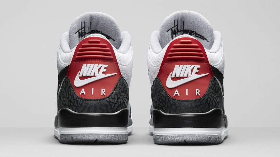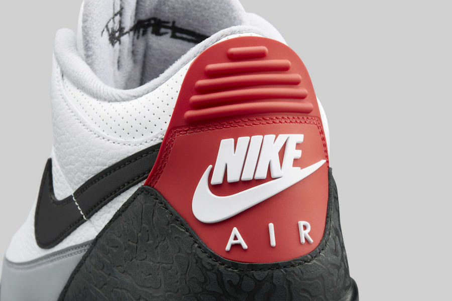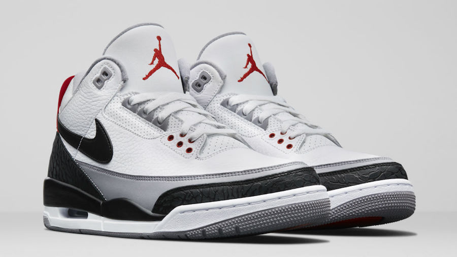 On a tendance à l’oublier, mais c’est vraiment grâce au designer qui a également donné naissance à la Nike Air Max que les Air Jordan sont devenues un tel phénomène de mode avec ce modèle parmi les plus populaires. C’est donc en toute logique qu’il peut bénéficier d’une version à son nom pour ce trentième anniversaire de la sortie des Air Jordan 3, les premières signature shoes de Mike qui ont hérité du désormais fameux print éléphant mais aussi du Jumpman, encore plus célèbre. On retrouve donc ces deux éléments sur ce coloris, qui emprunte des teintes aux deux versions d’origines, Black Cement et White Cement. Mais l’inspiration vient vraiment des premiers dessins de Tinker Hatfield. On pose donc du Jumpman sur la languette, le Nike Air au-dessus du talon, entouré par le print éléphant ou encore la bulle d’air apparente dans la semelle intermédiaire. On saupoudre la base blanche de touches de noir, de gris et de rouge. On mélange le tout avec amour, et voilà le résultat.