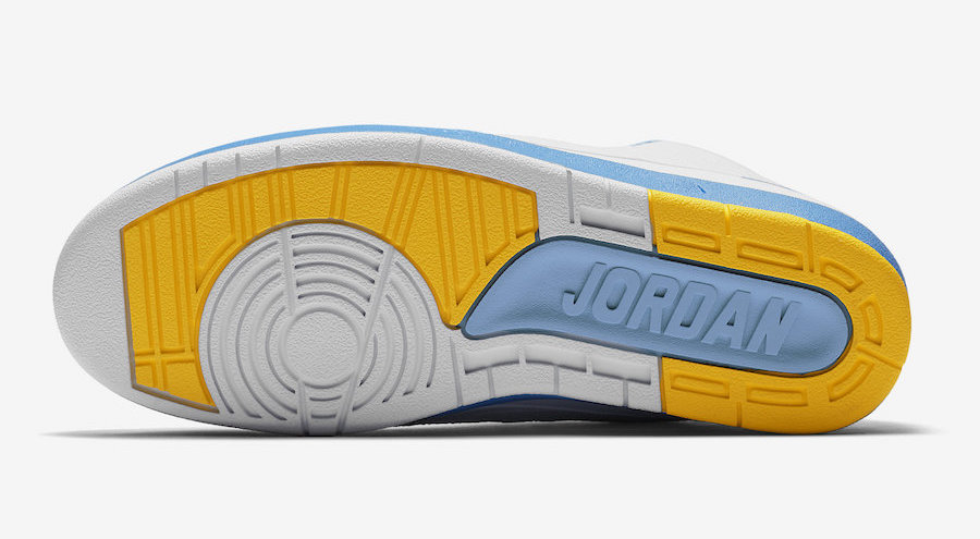 Si on exagère un peu – mais vraiment pas beaucoup – car Carmelo Anthony n’est pas encore à la retraite puisqu’il plombait encore la masse salariale du Thunder aux dernières nouvelles, force est de constater que l’atout offensif qu’il a pu être dans le passé est désormais un souvenir, trop lointain. Allez, on arrête de tirer sur l’ambulance et on se concentre plutôt sur les Air Jordan 2 Melo qui sont des pompes bien réussies. Comme on l’a déjà dit, on repart sur les couleurs des Nuggets que l’ailier portait il y a quelques années, à ses débuts dans le Colorado. Sur une base en cuir blanc qui recouvre non seulement la partie supérieure mais aussi une grande zone de la semelle extérieure, le bleu et le jaune de la franchise de Denver donnent tout l’intérêt du modèle. La première teinte se place sur les lacets, la semelle intermédiaire, le renfort proche du talon ou encore le contour de la cheville, ainsi que sur le logo Wings de la languette. Ces ailes contiennent également le jaune maïs – comme les Gitanes, sauf qu’il ne se fume pas – qu’on retrouve également sur le sigle Nike au dos du modèle mais aussi sous le pied. On notera enfin à l’arrière de la languette le numéro 15 qui était floqué sur le jersey de Melo.