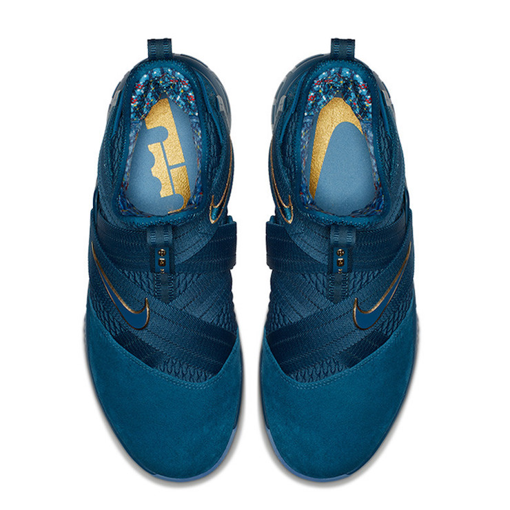 Pour ceux qui n’avaient pas forcément vu le modèle de l’an dernier, on va résumer rapidement. Agimat est un nom philippin qui désigne une amulette ou un sort, comme le mauvais que les Warriors semblent lui avoir jeté pour le martyriser en Finales NBA. Bon après de son côté il a déjà lancé un charme surpuissant sur sa Conférence qui lui permet de blesser ses principaux concurrents. Et oui, la liste est longue depuis The Decision, de Derrick Rose lorsque les Bulls terminaient avec le meilleur bilan à l’Est à Kyrie Irving et Gordon Hayward alors que les C’s se présentaient comme les principaux rivaux des Cavs, le Cyborg en a enterré plus d’un. Bref, laissons l’aspect mystique de LBJ et concentrons-nous sur cette version Agimat de Nike LeBron Soldier 12. Recouverte d’une teinte bleue sur sa partie supérieure en Battleknit et daim, la chaussure possède également une inscription « Mula Mandirigma Sa Mandirigma » signifiant « d’un guerrier à un autre ». Des Warriors encore, c’est vraiment une malédiction… On notera aussi la semelle translucide qui complète le look de la paire ainsi que la doublure représentant des volcans du pays.