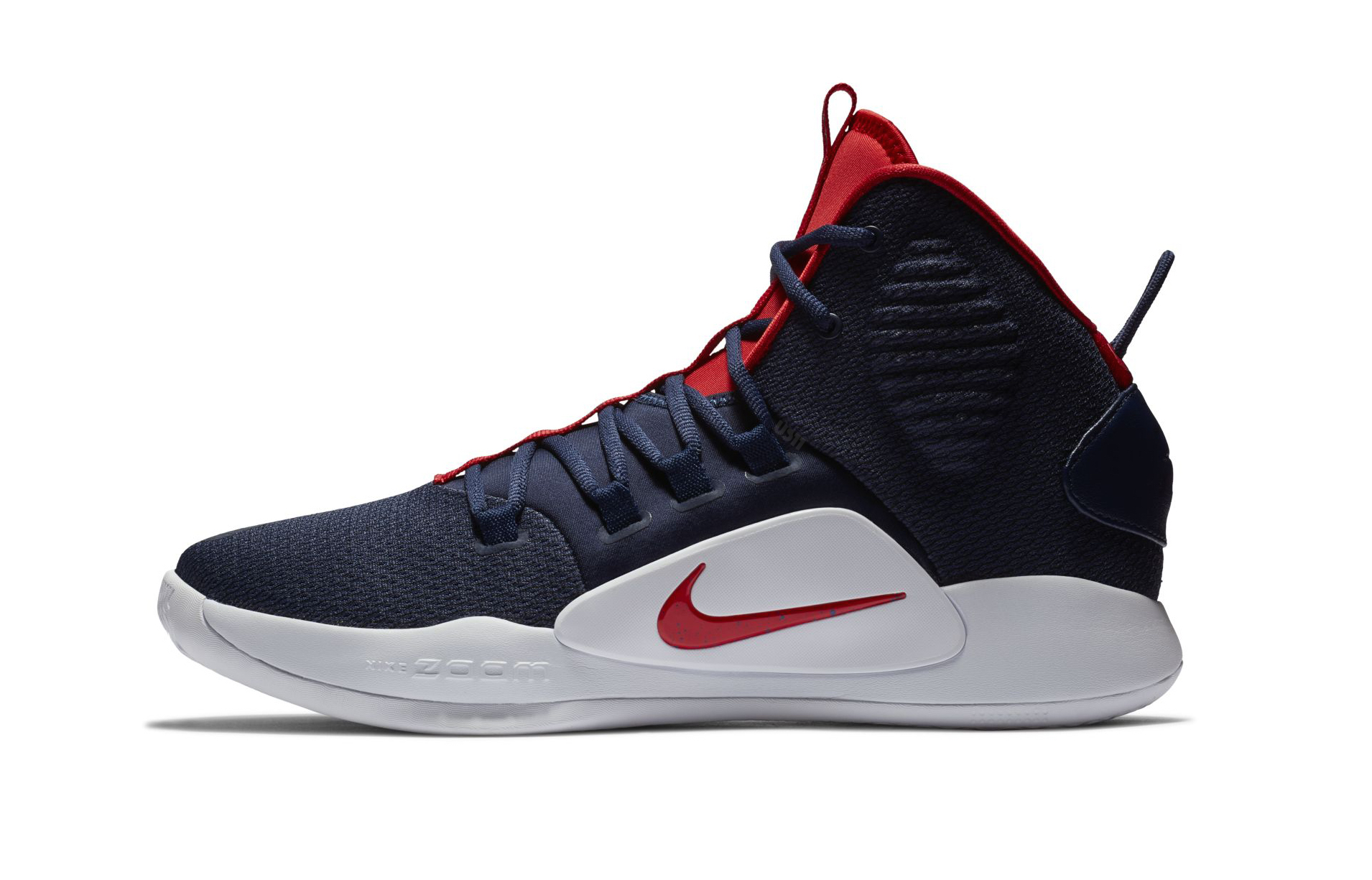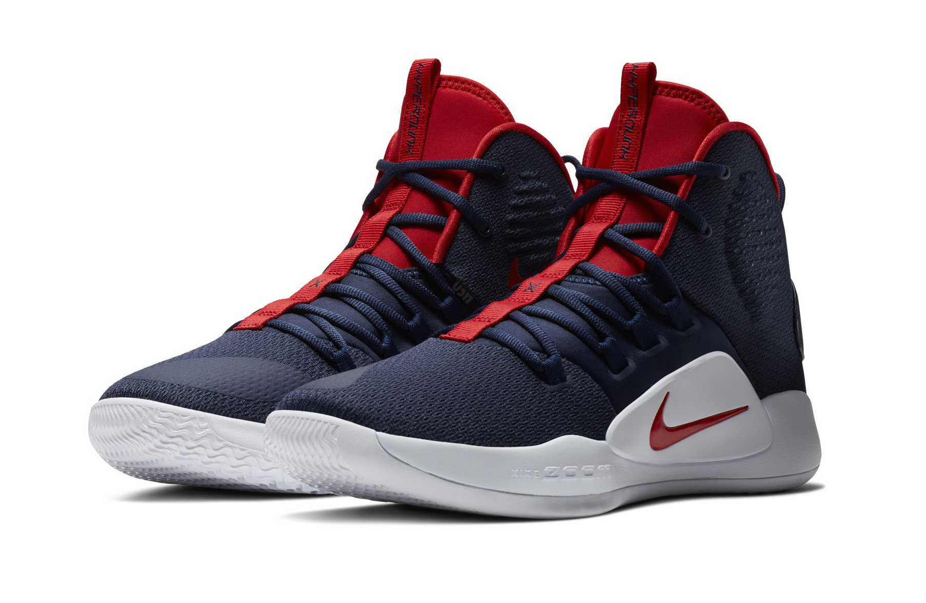 On reste toujours sur une tige haute, même si une version Low est probablement déjà dans les tuyaux et suivra prochainement. Les pompes s’appuient sur une couche supérieure est un motif jacquard ainsi qu’un système Flywire qui va assurer le maintien du pied. Classique pour le modèle, efficace comme d’habitude. Le tout est complété avec une unité Zoom Air gérant l’amorti tandis que la traction sera optimisée par les vagues qui composent la semelle en gomme. le look est simpliste, mais pas besoin d’en faire trop non plus, le but des Hyperdunk X restant la qualité technique sans charger la mule au niveau du superficiel et du prix. Pour le lancement du modèle, différents coloris sont déjà dans les bacs. On notera par exemple la version aux couleurs de Team USA ou encore du Bred, ainsi que du Triple White parmi les plus remarquables. On vous laisse mater les différents choix et faire le vôtre.
