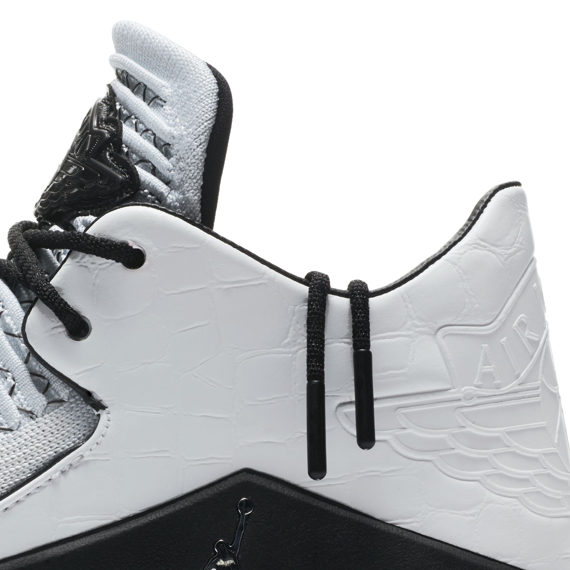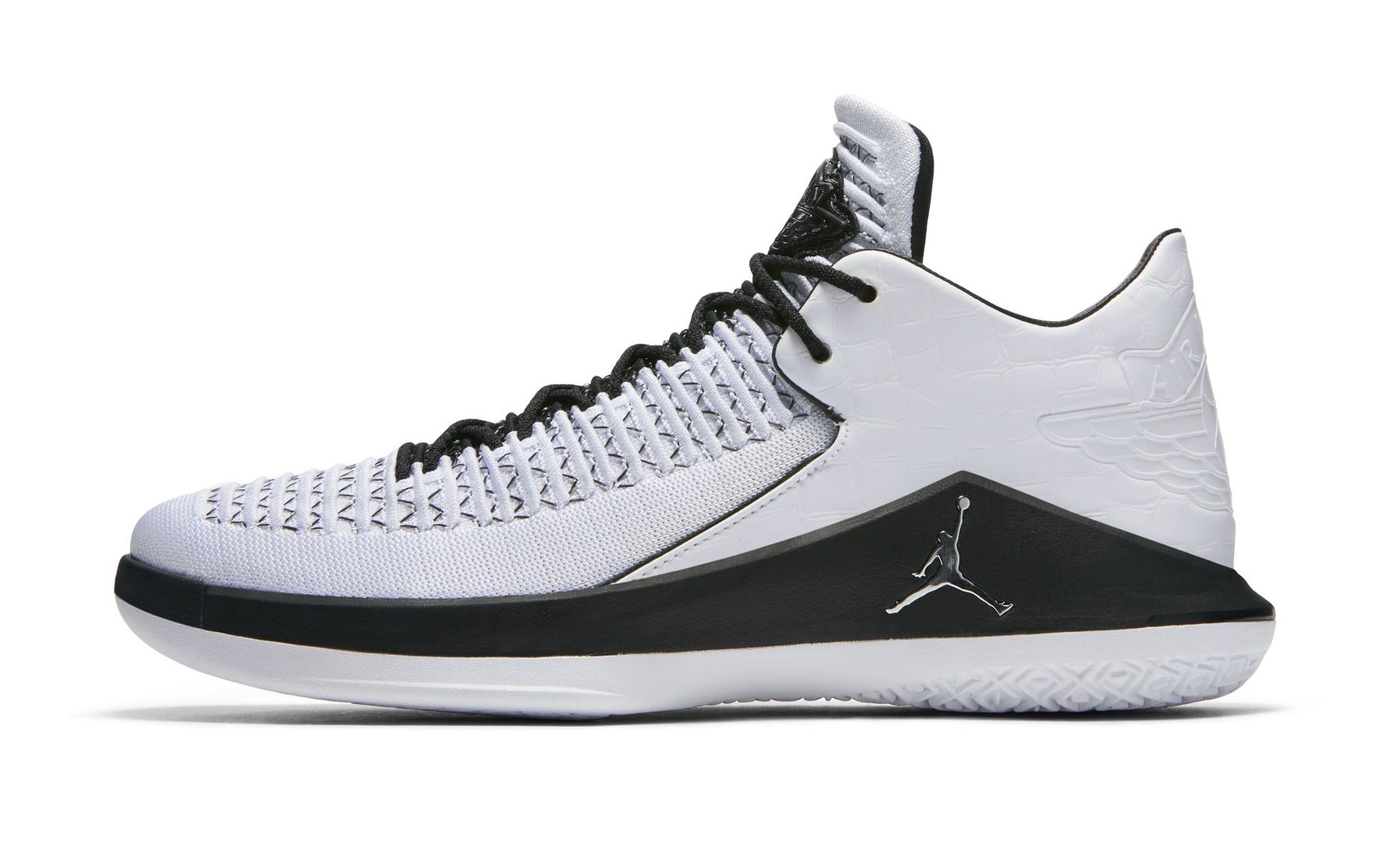 On a cherché un petit moment comment parler des Air Jordan 32 Low Wing It à l’aide d’une vanne sur Kevin Durant, LeBron James, Derrick Rose, Carmelo Anthony, les Knicks ou n’importe qui d’autre comme à notre habitude, mais le second degré ayant été porté disparu ces derniers temps on va éviter de froisser les esprits chagrins en restant factuels. Revenons en donc à ce modèle dont on ne dira pas qu’il est une escroquerie de plus d’un mec meilleur pour vendre des pompes que sur un terrain et dont toute la carrière est portée aux nues simplement grâce au marketing de Nike. C’est d’ailleurs une fois de plus dans cet esprit qu’en 2016, pour fêter les trente piges de Jordan Brand, la marque avait balancé une collection Poster dont les Air Jordan 2 Wing It faisaient partie. Elles rendaient hommage à la campagne publicitaire – comme quoi, on en revient toujours au business – des AJ2 de 1986. On retrouve pour l’occasion une base blanche sur le Flyknit, comme sur le cuir des Air Jordan 2 il y a deux ans, ainsi que des détails entre noir et argent pour compléter le look. On notera le logo Wings au dessus du talon qu’on ne retrouve pas sur toutes les autres versions des Air Jordan 32.