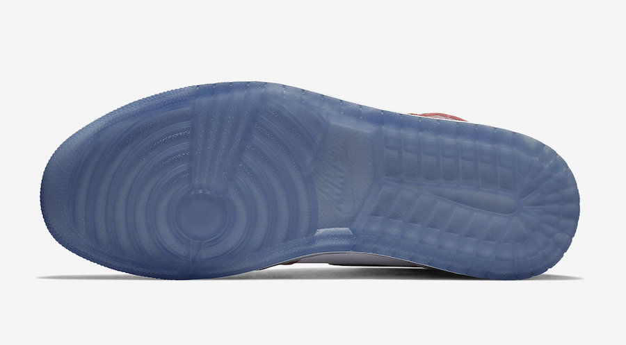 Première chose qui saute aux yeux lorsqu’on mate les Air Jordan 1 Origin Story, c’est bien entendu leur style so Bulls avec le rouge et le blanc qui constituent la base du modèle, que ce soit sur la partie supérieure en cuir comme la semelle intermédiaire. Le noir se glisse comme souvent au niveau des lacets et des Swoosh, complétant la charte graphique de la franchise de Windy City. Mais nous ne sommes pas sur un thème classique des Taureaux, car Jordan brand a ajouté quelques détails et modifications pour faire le lien avec le film d’animation sur Peter Parker. On pense notamment au logo bleu sur la languette, mais aussi au style reflective appliqué sur le upper donnant un aspect bien moins lisse aux Air Jordan 1. Enfin, on notera la semelle extérieure translucide qui complète le tout.