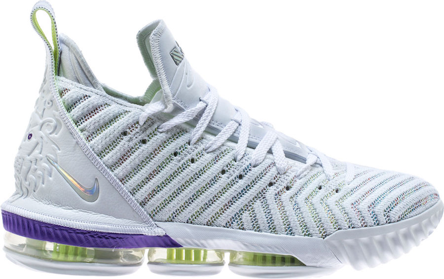 Comme son nom le laisser penser, Nike s’appuie sur les couleurs de Buzz l’Éclair pour habiller les LeBron 16. On ne sait pas si la Ligue prévoit de sanctionner le joueur de Los Angeles pour tampering alors qu’il tente d’accueillir le ranger de l’espace pour la prochaine version de Sapce James, mais on imagine qu’Adam Silver suit le sujet de près. En attendant, ce sont des pompes avec une base blanche comme la combinaison de Buzz, avec quelques touches de vert fluo et de violet en particulier vers la semelle et au niveau du talon. Les ailes ne sont pas fournies avec le modèle.
