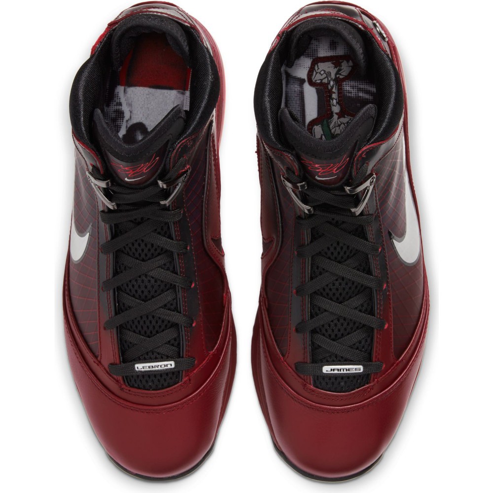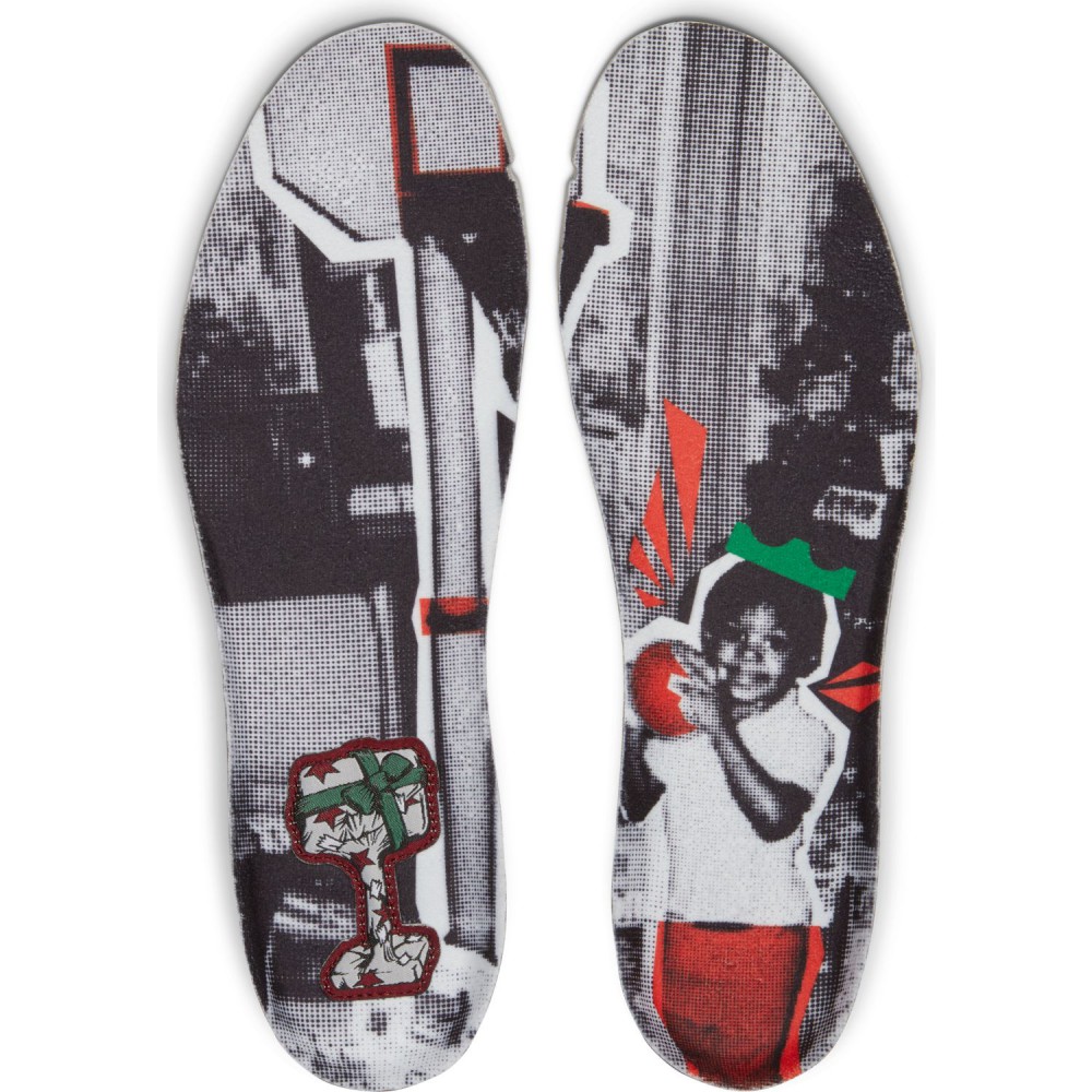 Alors que la LeBron 17 fait actuellement un carnage dans les ventes de sneakers, la marque à la virgule a décidé de se la jouer un peu old-school pour célébrer les fêtes de fin d’année et plus particulièrement l’un des grands moments de la saison régulière avec ce Christmas Day. Paradoxalement, le Chosen One devrait donc porter du rouge et du noir pour affronter ses voisins le soir de Noël. Des couleurs pourtant présentes sur le logo et le maillot des Clippers, mais on ne rompt pas la tradition en NBA, peu importe l’affiche. Sur cette LeBron 7 Retro tout droit venue de 2009, on retrouve évidemment cette bulle Air Max sous l’ensemble du pied et une empeigne rouge et noire. Le Swoosh extérieur est argenté comme une guirlande mais de nombreux détails sont rajoutés du côté intérieur avec un logo du King et une couronne en vert sapin ou encore une virgule découpée directement dans le cuir. Les semelles intérieures n’ont pas bougé d’un poil par rapport à l’original avec une photo de LeBron encore enfant en train de recevoir ses cadeaux devant un grand sapin de Noël. Collector !