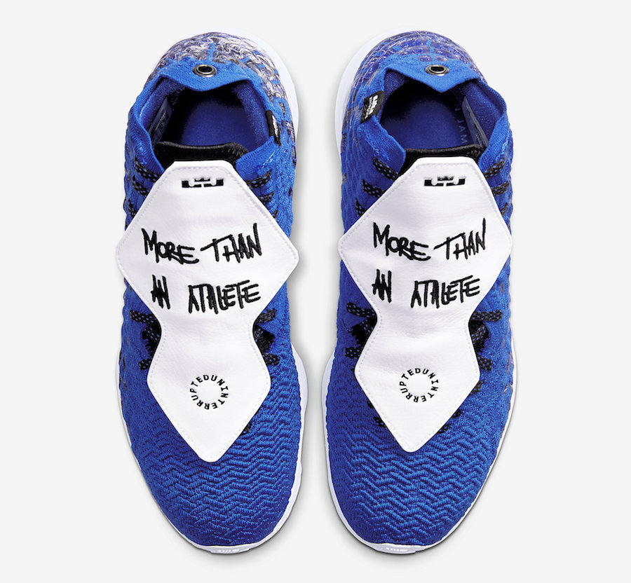 Cela fait déjà un petit moment que la mode des chaussures personnalisées est arrivée en NBA et les joueurs sont de plus en plus nombreux à se saisir d’un marqueur pour passer des s/o en masse ou rendre hommage à des proches et des célébrités. Le I can do all things de Stephen Curry sur les Under Armour est un gros classique mais on se souvient aussi des chaussures marquées en mémoire de Chyna, la soeur d’Isaiah Thomas, lors de son retour sur les planches peu après le décès de sa frangine. Décortiquées en long et en large dans les médias, les sneakers sont donc un moyen comme un autre de transmettre une idée ou un message. Bron est allé encore plus loin dans le délire avec les Nike LeBron 17 More Than An Athlete vendues avec deux marqueurs noir et bleu. La semelle extérieure blanche est lisse pour permettre à chacun d’y écrire les mots qu’il souhaite avec la possibilité d’effacer sans peine pour adapter son message au jour du match ou à l’adversaire mais aussi à l’actualité. Lors de votre prochain match de Dep 3, vous pourrez désormais vous la jouer trashtalker en annonçant à votre vis-à-vis que vous allez lui en mettre 50 dans la vue ou bien défendre la planète en rappelant à tous de bien fermer le robinet lorsque vous vous brossez les dents. Pour compléter votre mood du moment, trois languettes interchangeables (noire, bleu et blanche) sont également mise à disposition de manière à matcher avec l’empeigne habituelle en Battleknit.