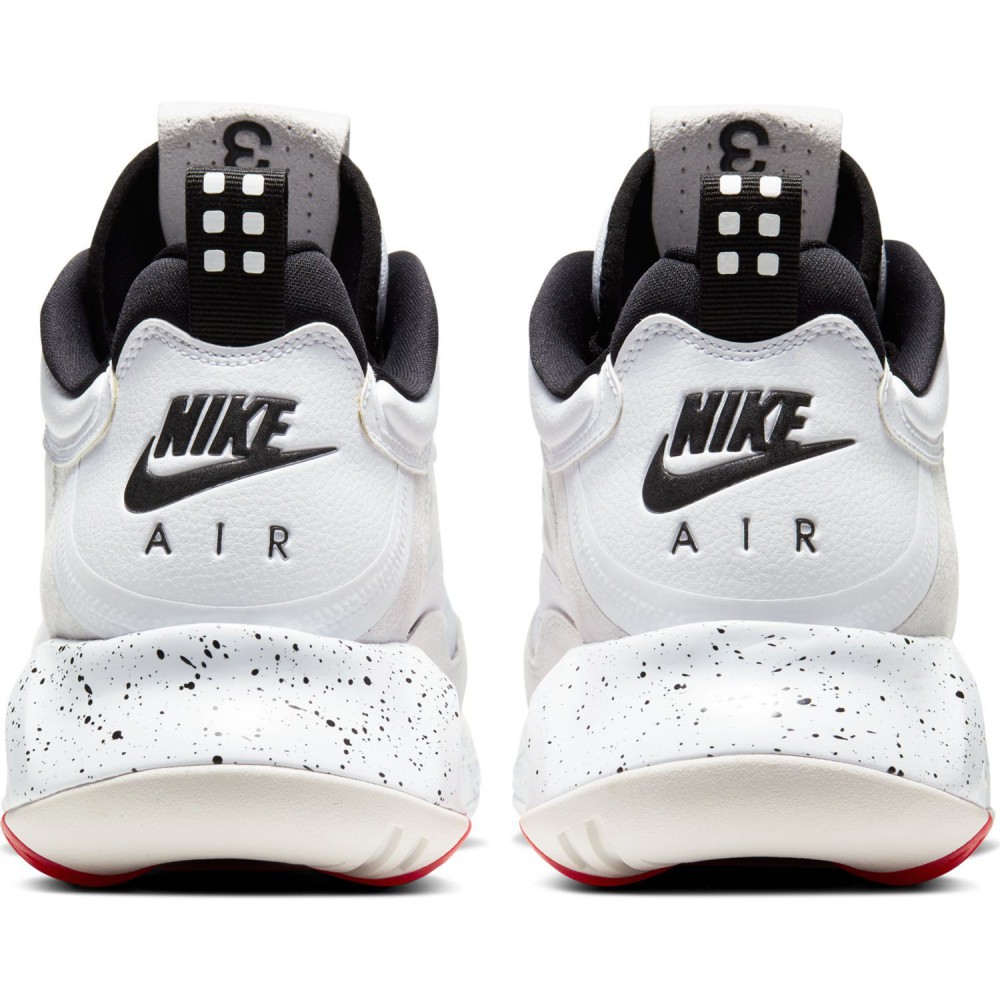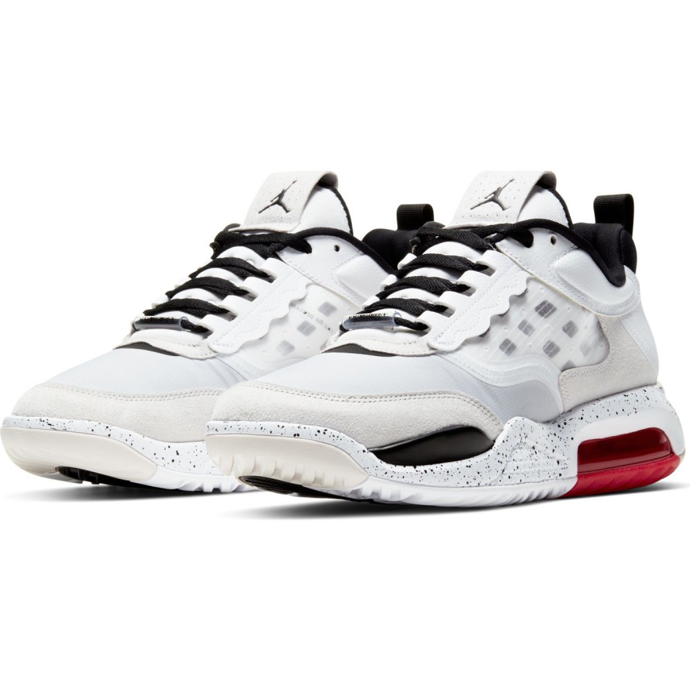 MJ n’a pas attendu de venir à Paris pour faire du business avec le PSG notamment. On se souvient tous du lancement de cette collection qui a désormais fait le tour du monde. En l’occurrence, il n’est pas question de foot, quoi que. Car un coloris dédié au club de la capitale existe aussi pour les Jordan Air Max 200. Mais aujourd’hui concentrons nous plutôt sur le blanc, noir et rouge de cet hybrid entre la Air Jordan 4 et la Nike Air Max 200. La bulle d’air est mise en valeur avec un rouge translucide alors que l’empeigne est un alliage de différents matériaux à dominante noire. La semelle est pour sa part tachetée à l’image de certaines Asics pour les connaisseurs. Sur la languette le Jumpman se mêle à l’inscription « Max 200 » alors que le logo Nike Air est affiché sur le talon. Un modèle réservé au lifestyle si vous ne voulez pas vous faire une cheville sur le parquet mais qui trouvera facilement son public avec un résultat street archi propre et un mélange entre deux paires très appréciées des sneakerheads. On attend évidement d’autres coloris pour sélectionner le meilleur mais la Jordan Air Max 200 n’est pas près de disparaître.