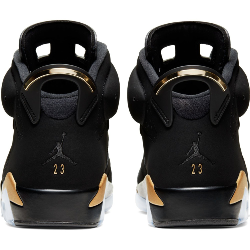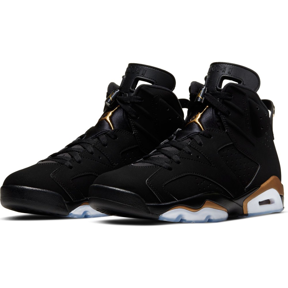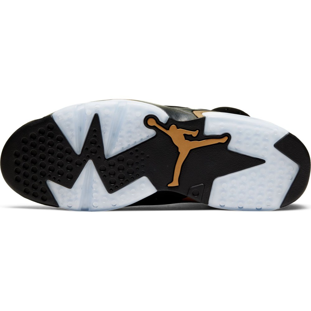 Encore des Jojo ? Il faut dire que le numéro 23 des Bulls est au coeur de toutes les conversations en ce moment avec la sortie de la série documentaire « The Last Dance » sur Netflix ce lundi. L’équipementier a donc décidé de profiter de l’occasion pour en rajouter une petite couche avec les Air Jordan 6 DMP ou “Defining Moment”. Qu’a-t-il pu bien faire de si extraordinaire dans sa carrière ? Trois fois rien, juste deux Threepeat justement célébrés en 2006 avec le pack réunissant cette paire et la Air Jordan 11 du même coloris. Cette fois, on se concentre donc sur le tout premier titre de Mike et des Bulls. La paire est exclusivement faite de noir et d’or métallique en référence au Larry O’Brien Trophy et à sa statuette de MVP des Finales. Du blanc vient compléter le tout au niveau de la semelle et pour entourer la bulle d’air sous le talon. Les notes dorées sont discrètes et efficaces, que ce soit le « 23 » sur le talon, la languette arrière ou le Jumpan sur la languette avant et sous la semelle. On ne peut qu’aimer !