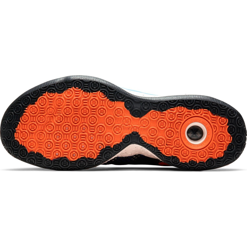 Bon, d’accord, la vanne sur Devin Booker est pas très cool pour Paulo, parce qu’il s’est quand même arraché pour aller chercher la balle (spoiler : il l’a pas eu). Dans la foulée ? Appel avec Beaverton : ‘Eh les gars, me faut une nouvelle paire pour être encore plus insaisissable‘. Ni une ni deux, les designers de la marque se mettent au charbon et nous offrent une petite paire bien sympathique et très adaptée à un besoin de furtivité immédiat. Empeigne au motif camouflage numérique, dans des nuances d’orange et de noir, ça rappelle fortement l’époque où l’une des seules préoccupations d’une partie d’entre nous était de se la donner sur Call of. Sur la chaussure, on pourrait croire que ça serait voyant, mais ça produit exactement l’effet recherché : ça passe crème et c’est à la fois original et passe partout. Swoosh orange, doublé d’un motif quadrillage qui rappelle encore une fois l’idée de camouflage. Semelle blanche saupoudrée de légères tâches de peinture bleues et rouges, histoire de montrer que la paire à un background, et aussi de faire un petit clin d’oeil aux Clippers, son équipe actuelle. Sur le dessus, la fermeture est noire, c’est sobre et classique mais ça évite tout faux pas. Enfin, sur le côté intérieur, une toile noire recouvre l’empeigne, comme pour rappeler le sort qui attend l’adversaire s’il se fait attraper.