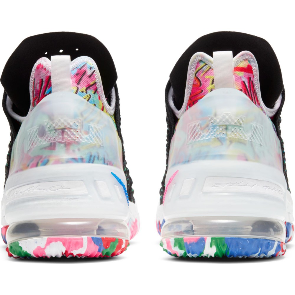 Elles ne sont pas pour toutes les bourses, mais impossible de ne pas croiser quelques Bron sur les parquets de départementale le dimanche matin. Depuis 2003, le futur MVP des Finales (oui) laisse très peu de place à la concurrence et ça vaut aussi pour le business. Encore bien loin des ventes de Jordan dans le monde, il est par contre une référence chez les non-retraités qui jouent avec leurs initiales au bout des languettes de leurs chaussures. Mais trêve de blabla, on vous laisse donc découvrir les Nike LeBron 18 dans un premier coloris baptisé James Gang en hommage au clan sur qui le numéro 23 des Lakers peut toujours compter : sa femme Savannah Brinson et ses trois enfants. Les points clés de ce nouveau modèle ? Le fidèle flyknit est toujours présent pour entourer le pied sans trop le compresser. La languette laisse entrevoir trois bulles, la première représentant un lion, la seconde reprenant le nom du coloris et la troisième affichant tout simplement la signature du quadruple MVP. La midsole blanche surélevée permet à la semelle de péter à l’oeil avec toutes ses couleurs vives (rose, vert, bleu rouge) et le talon est joliment décoré tout en bénéficiant du confort de la bulle d’air présente juste en-dessous. Comme depuis quelques années, pas grand-chose à redire au design. La marque à la virgule a fait le taf et nous propose du neuf tout en respectant l’identité du King. Voyez par vous même !