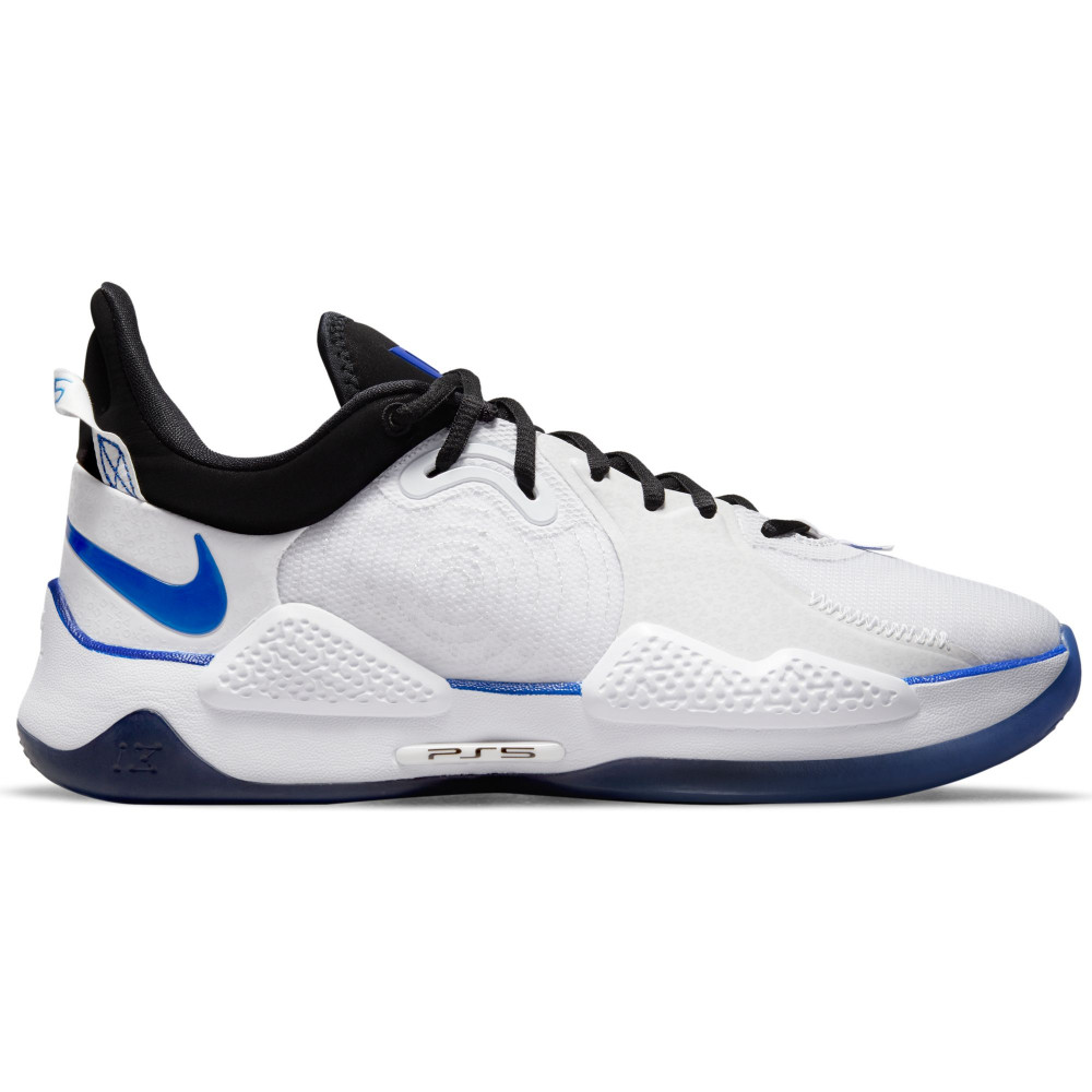 Sortie tout droit du Nike Lab, la PG5 PS5 devrait plaire à ton petit cousin fan de Gotaga ou à ton tonton idole des Air Mag de Marty Mc Fly. Une languette reprend le logo habituel des PG, l’autre celui de la console de chez Sony. L’alliage des couleurs est subtil et les touches de bleu nous plongent parfaitement dans l’univers de la marque, axant sur un coté bien plus futuriste que les anciennes collaborations entre le joueur, Nike et Playstation. Reprenant traits pour traits la charte graphique utilisé pour le design de la dernière console de salon, cette paire de chaussures a le mérite d’être bien plus fonctionnelle. Non, à l’inverse de la console de tes rêves, elle ne nécessitera pas de bouger trois meubles de ton salon pour lui laisser de la place, sauf si tu chausses du 54 comme le Shaq.