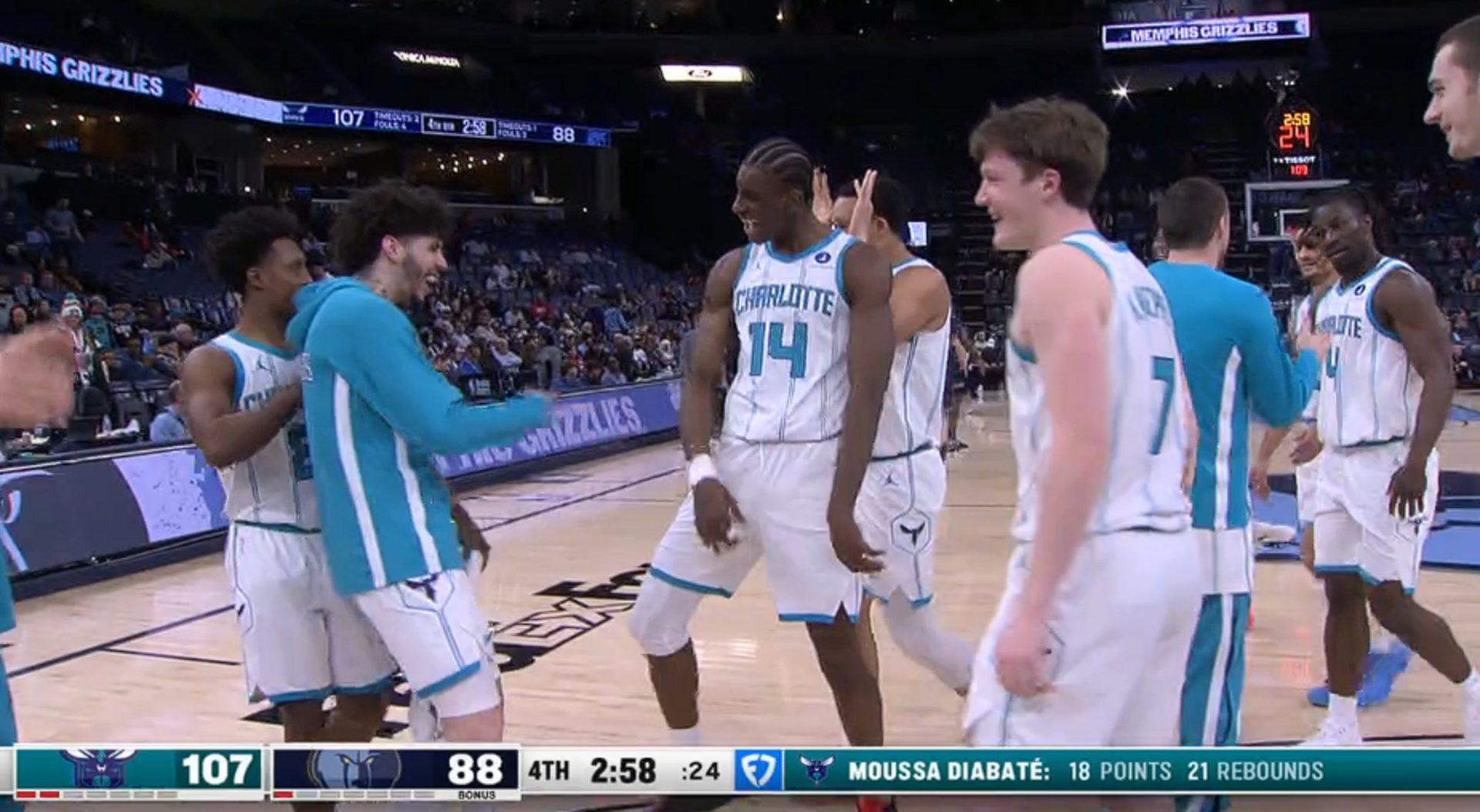 À Memphis, Moussa Diabaté vient de réaliser le meilleur match de sa jeune carrière. 18 points, 20 rebonds, une présence infernale au rebond offensif (8), et Charlotte repart du FedExForum avec une victoire nette 112-97.